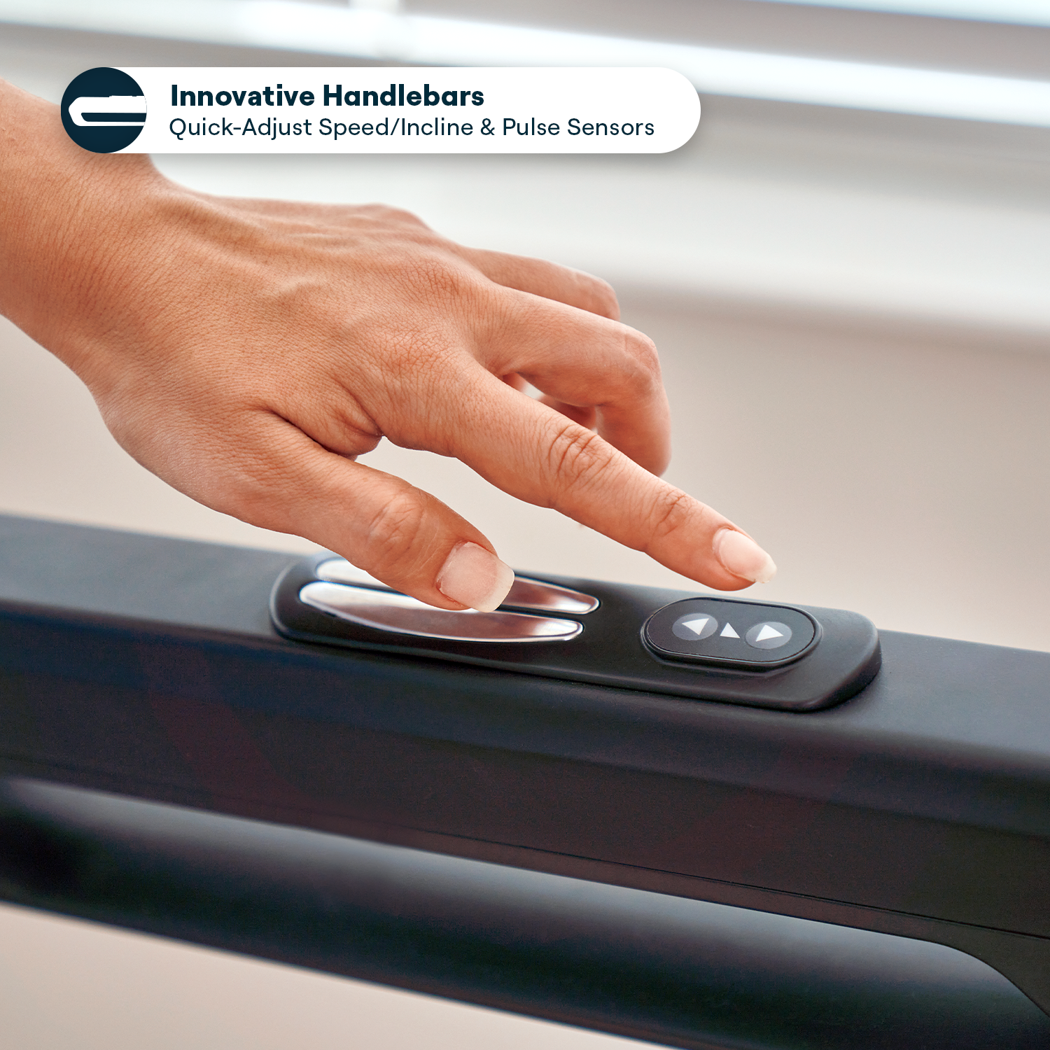 The Echelon Stride-30 treadmill combines performance, convenience, and comfort for your home workouts. Track key performance stats like speed, calories, distance, and more with Echelon Fit® app compatibility from the 5-inch backlit LCD display. Keep challenging yourself with 12 levels of power incline and speeds up to 10 MPH, while the 16” x 50” impact-absorbing running deck ensures a smooth, joint-friendly experience. Featuring quick-adjust wheels for speed and incline, 15 pre-programmed workouts, and easy foldable storage, the Stride-30 is perfect for maximizing your fitness routine without sacrificing space.
